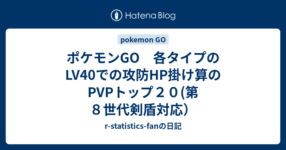 ポケモンgo 各タイプのlv40での攻防hp掛け算のpvpトップ20 第8世代剣盾対応 R Statistics Fanの日記